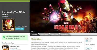 ဇာတ္လမ္းထဲက တိုနီစတာ့ခ္လိုပဲ ဘီလ်ံနာျဖစ္ျပီး Iron Man ဝတ္ဆံုေတြ တစ္ခုျပီးတစ္ခု Unlock လုပ္ရမွာ ျဖစ္ပါတယ္။ Resolution ေတာ္ေ တာ္ ေကာင္းတဲ့ ဂိမ္းပါ။ Engine လည္းစားတဲ့အတြက္ ေတာ္ရံု ဖုန္းနဲ႔ဆုိရင္ ေဆာ့ေနရင္း error ျဖစ္ခ်င္ ျဖစ္ပါလိမ့္မယ္။ Gameloft ကထုတ္တဲ့ size ၾကီးဂိမ္းျဖစ္ျပီး Google Play မွာ Rating ငါးလံုးအျပည့္ နီးပါး အဆင့္ေပးထားၾကတဲ့ ဂိမ္းပါ။